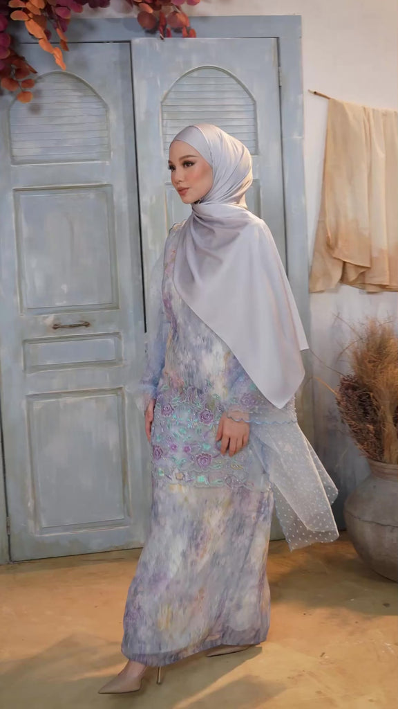 Modern baju kurung cutting with heavy beaded embroidery.